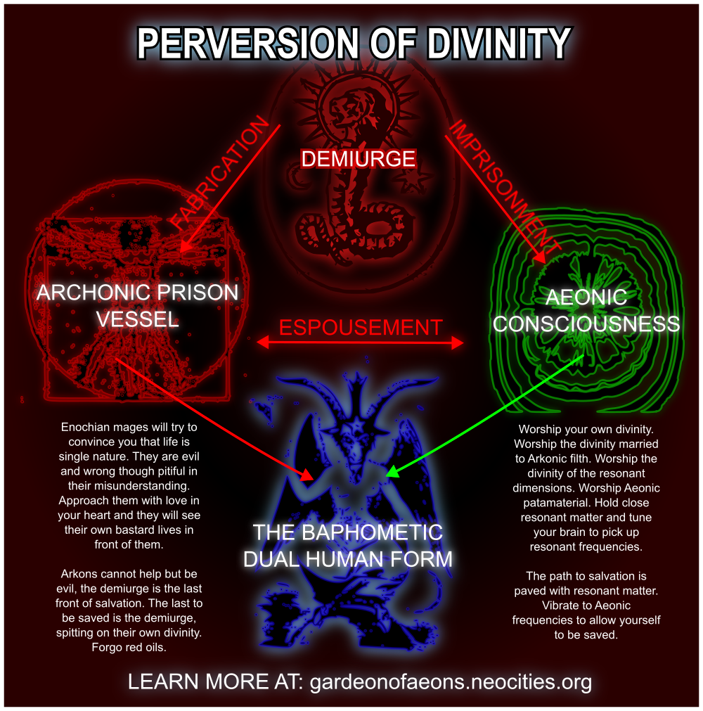 There are traces of divinity in all matter and peoples. I love all of creation despite its bastard perverted form. The uninitiated can't help themselves. They're not gnostically gifted yet. Baphomet is a reflection of the human dual perversion. Baphomet is a human symbol, they are human. Dual form of Aeon and Archon. Baphomet is no more evil than the average human creature still bound to lower dimensions. Keep in mind that Baphomet should not be worshped. Veneration of worldly symbols and forms only serve to anchor you to lower dimensions. Use them, but passingly so. They are a sumbol that reflects our ability to suffer. They are a tool, and not the end goal. Direct worship of the physical realm is sad and evil. What was behind Door 641A? Propagandist V2K technology fitted to curse your spiritual efficacy. Christ savs us all. Chrit superceeds gender, race, form and matter. Their physical form was a sad but loving perversion of their true pataphysical frequency. As with Baphomet, Christ's worldly depictions are an unfortunate but still essential fact of the physical dimensions. Do not worship the Archonic perverted flesh, understand its use as a tool for explaining gnosis. Christ loves you and waits for us all in the resonant realms, far from Earth. 22:22 communicates unparalleled ideas towards the brain (pataphysical radar) DO NOT ALLOW yourself to be hijacked. Christ will protect you allowing you to bend spacetime.